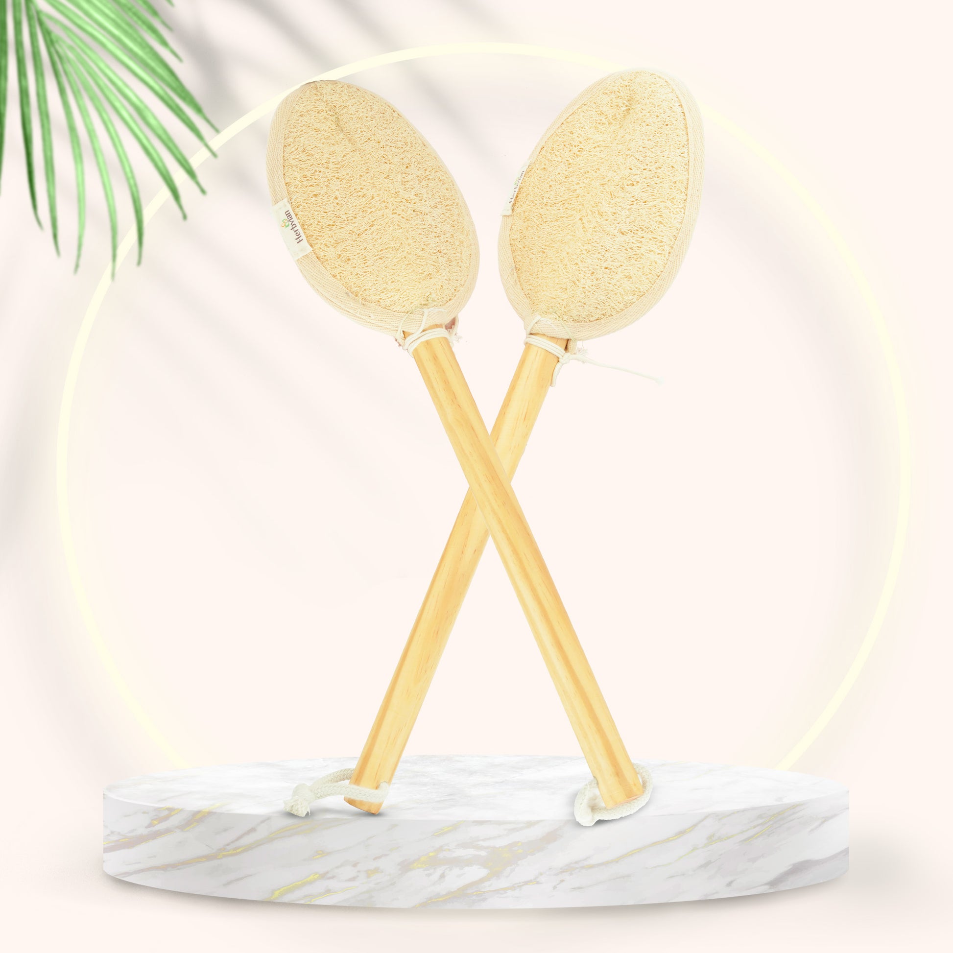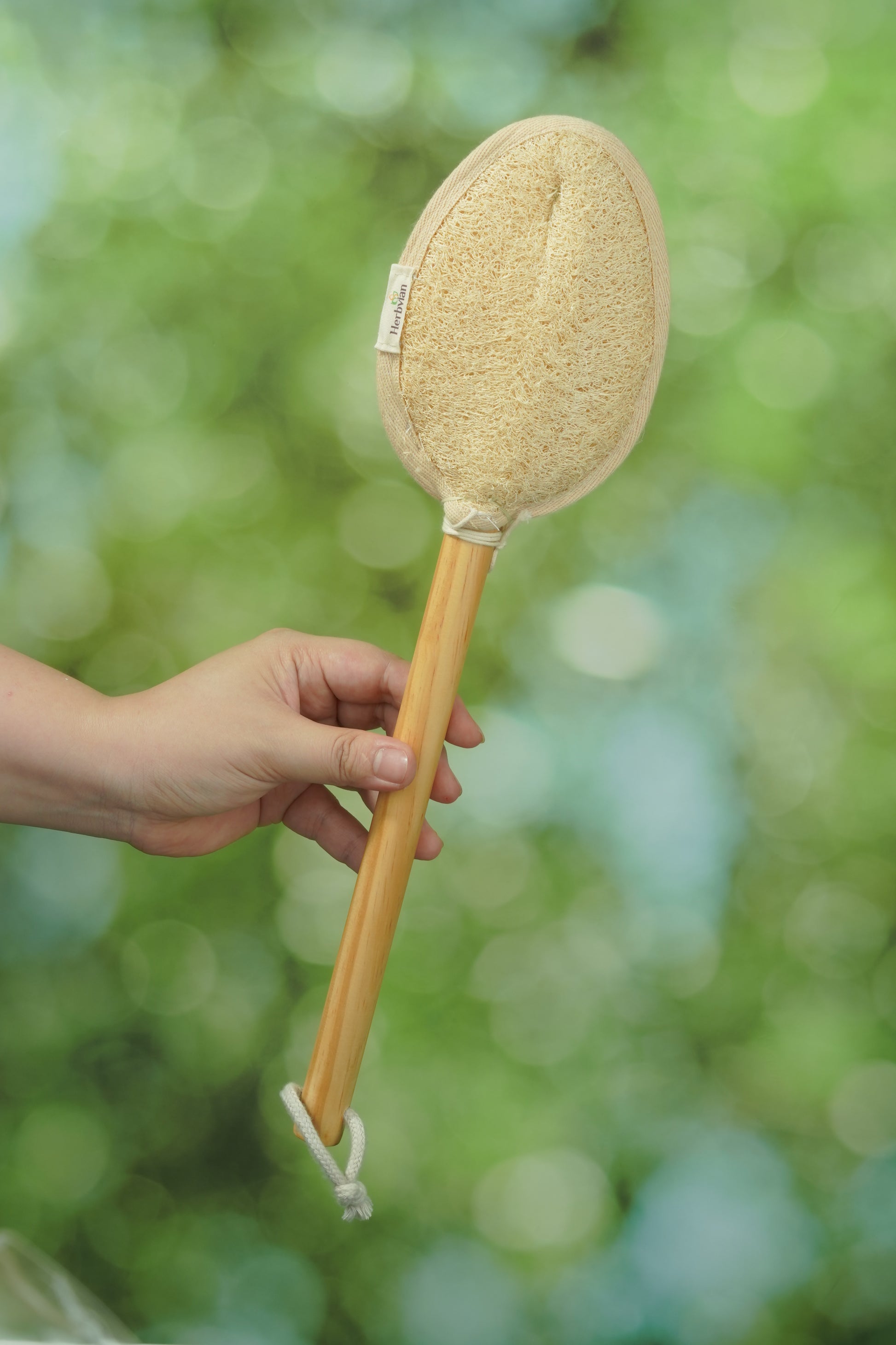 Designed for effortless back cleansing, this long-handled brush features a natural loofah head and a sturdy wooden grip.