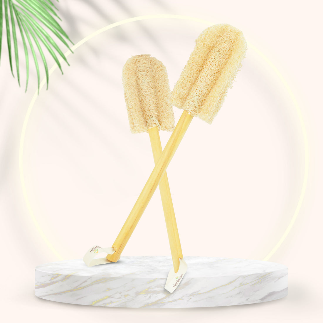 Dual-Sided Loofah Back Scrubber – Loofah + Bamboo Cotton