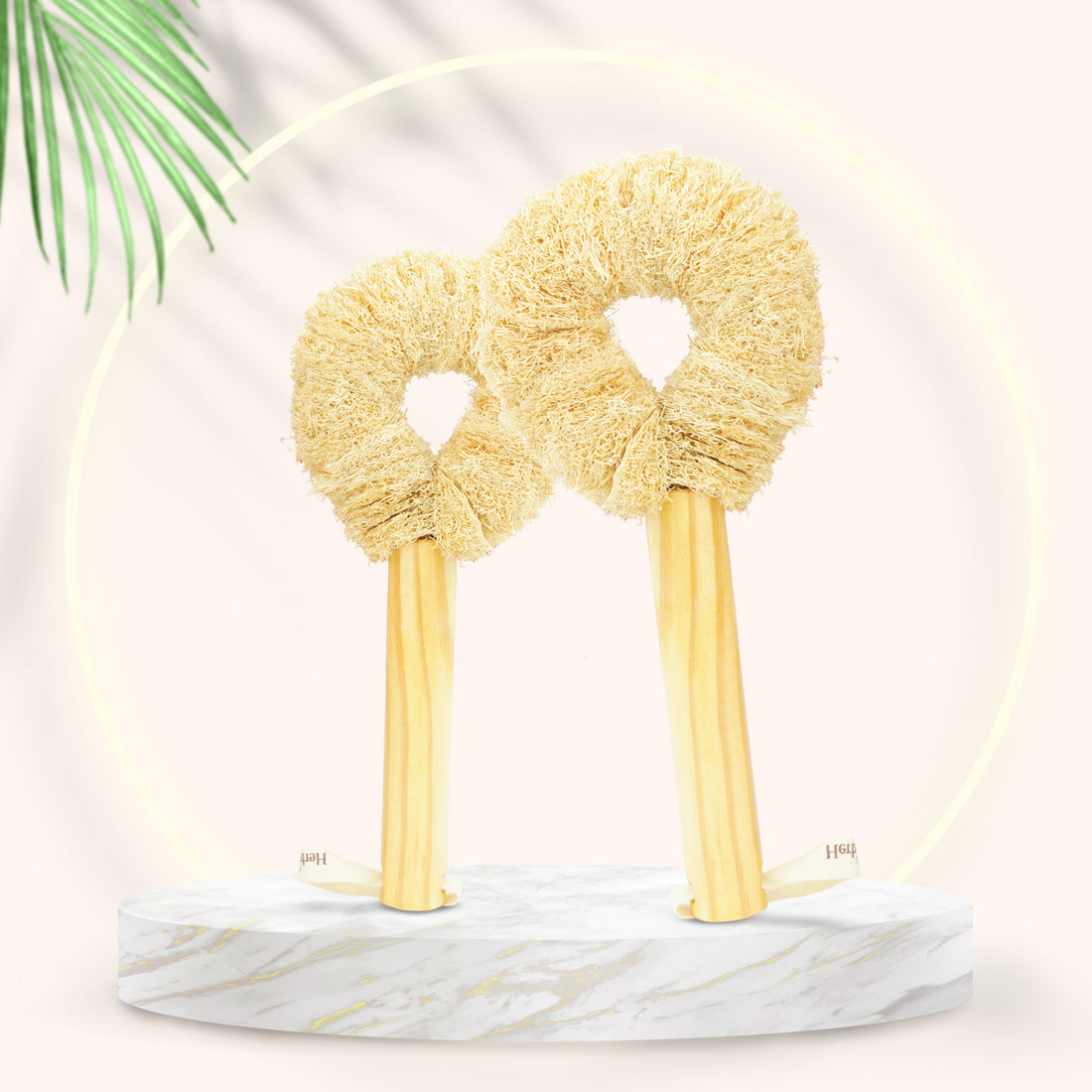 Heavy-Duty Loofah Brush – Donut Shape, Wooden Grip