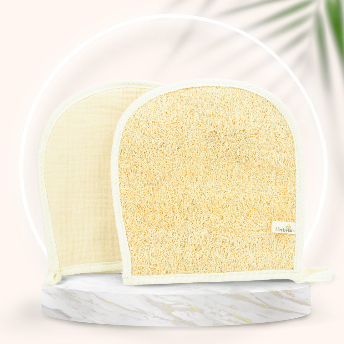 Natural Loofah Bath Glove – Bamboo Cotton Lined
